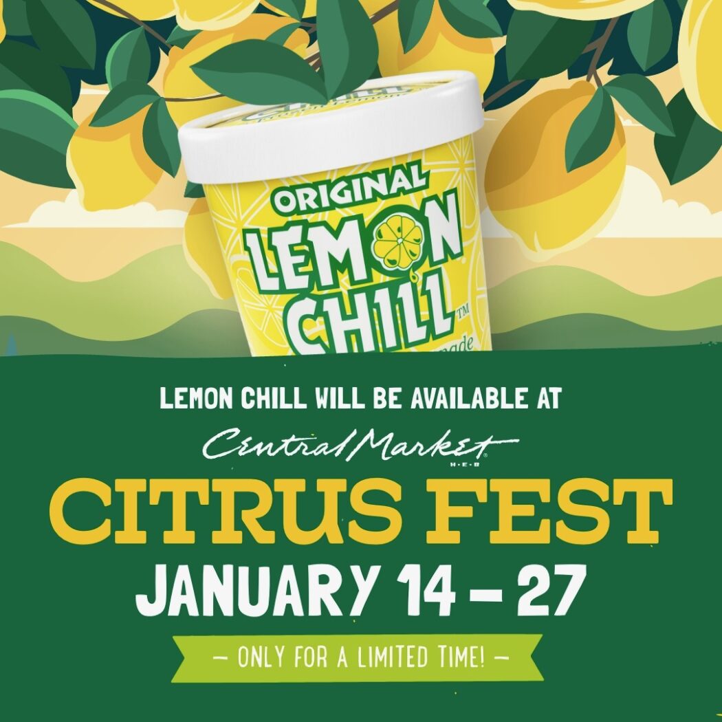 The coolest lemon treat in the Lone Star State has officially landed at Central Market — just in time for their annual Citrus Fest, running January 14–27! Whether you’re strolling the aisles for Meyer lemons or sampling the latest citrus creations, now you can grab a frosty, soft frozen Lemon Chill to make your day even brighter.
